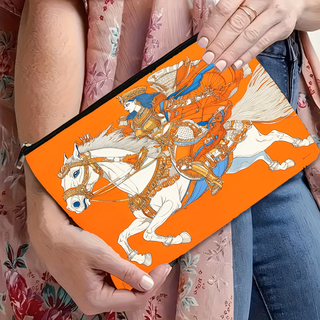 Elegant White Horse with Exquisite Orange Bridle Flannel Blanket
