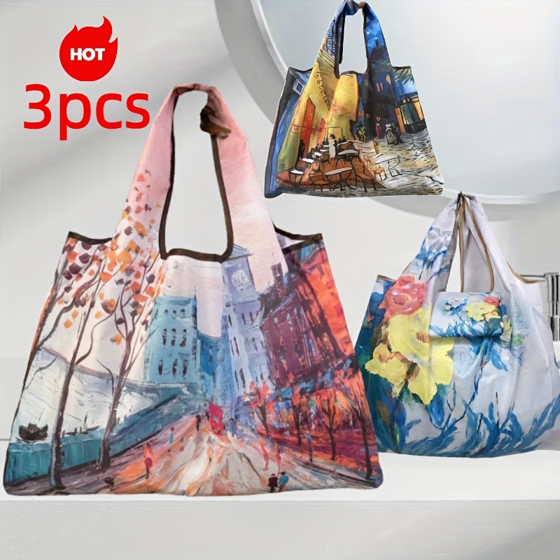 4 reviews for 3pcs Large Capacity Oil Painting Style Tote Bag