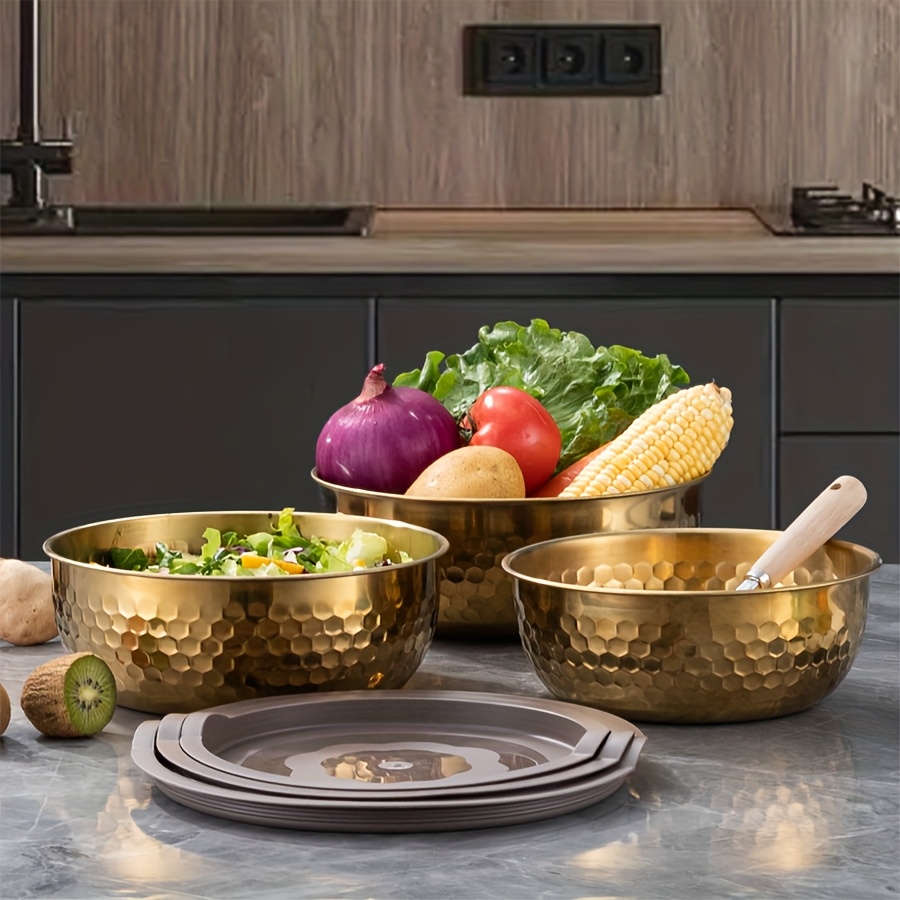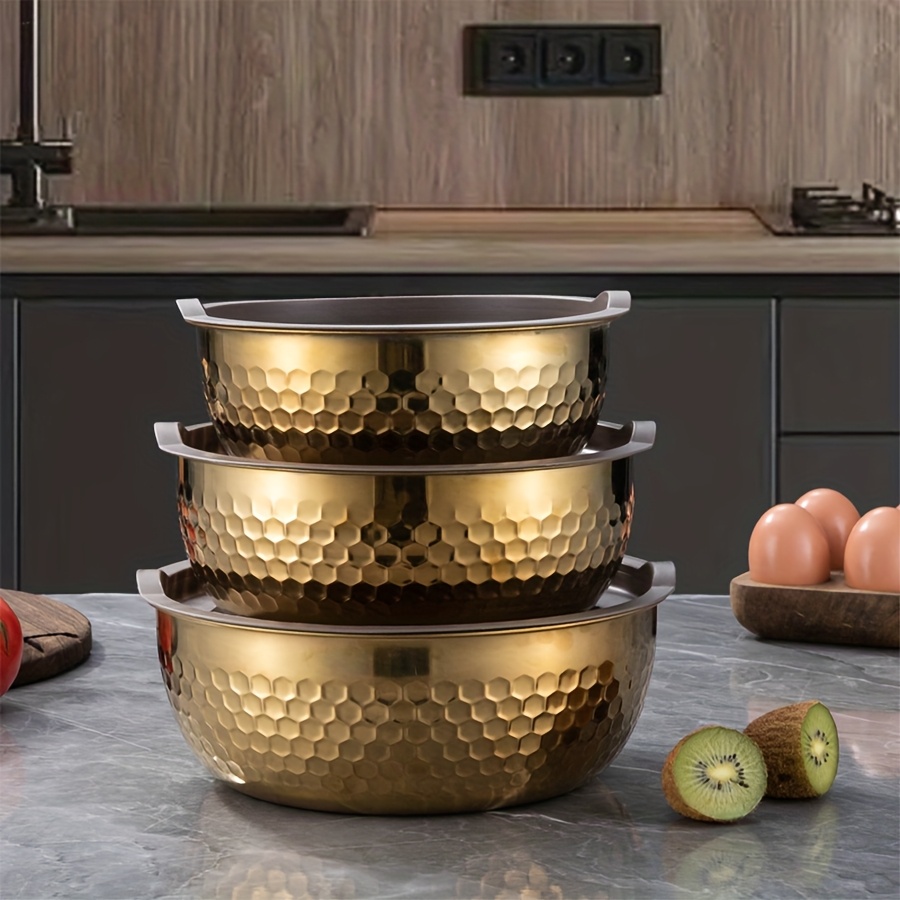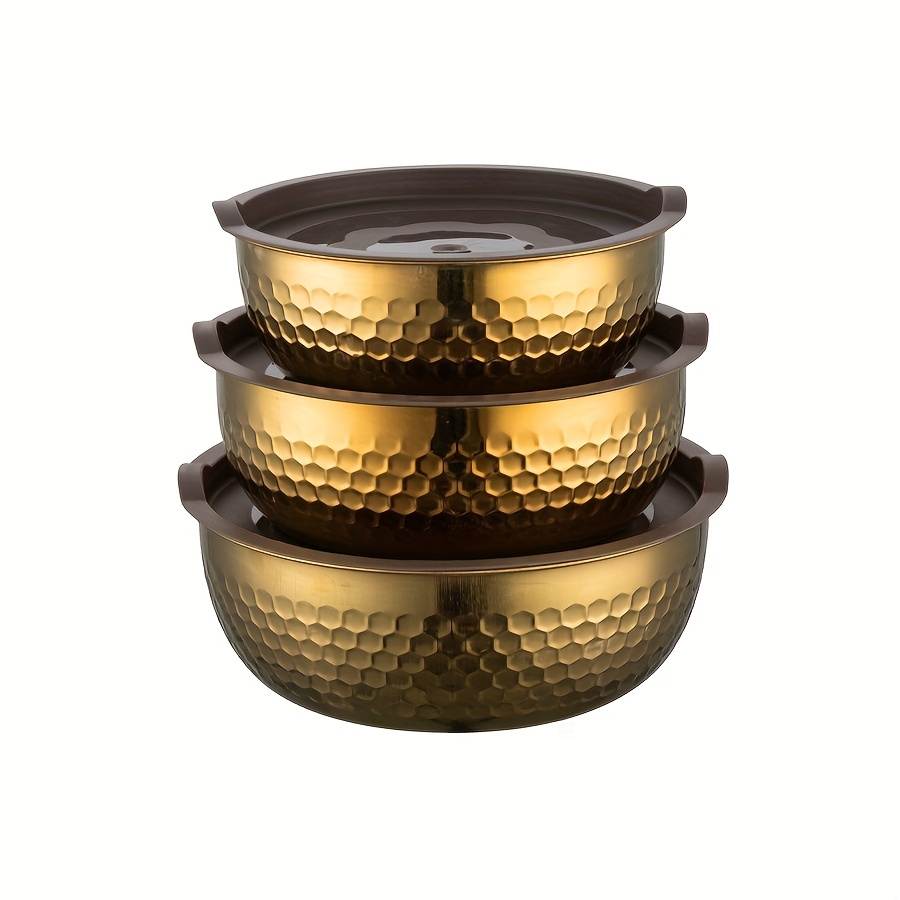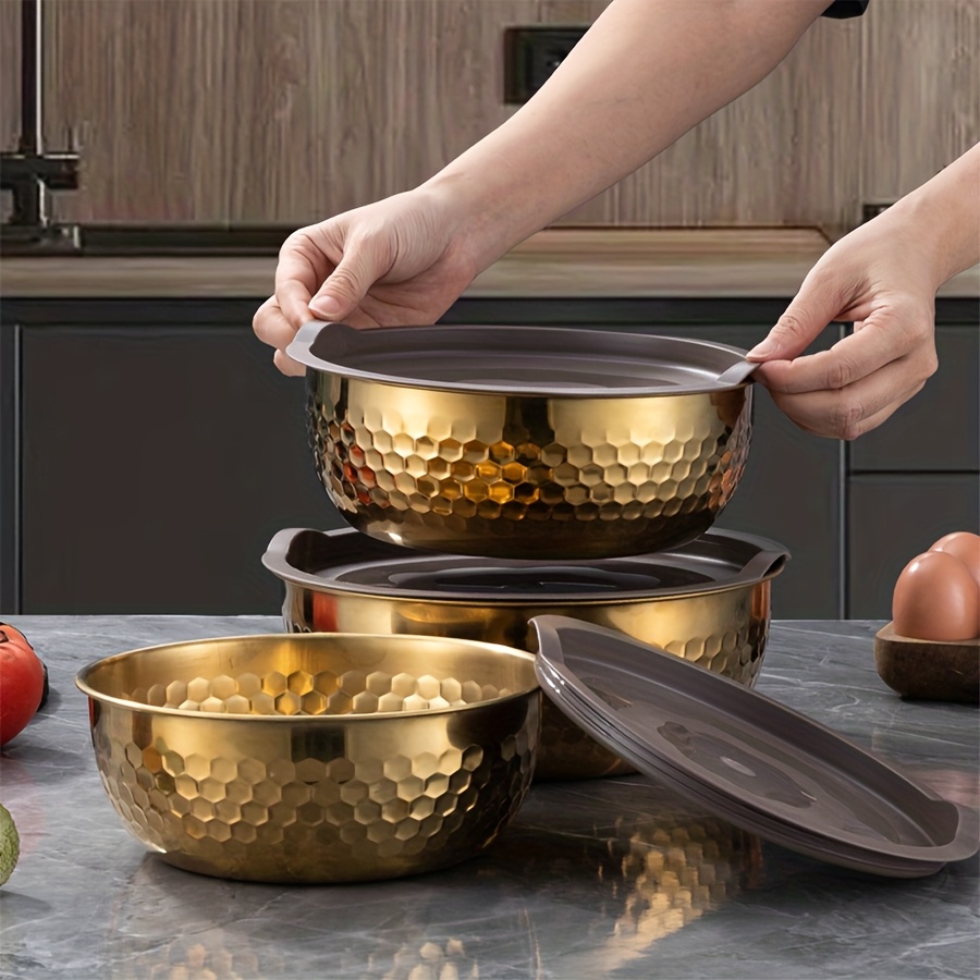 2 reviews for 3pcs/set, Golden Kitchen Stainless Steel Salad Bowl with Lid