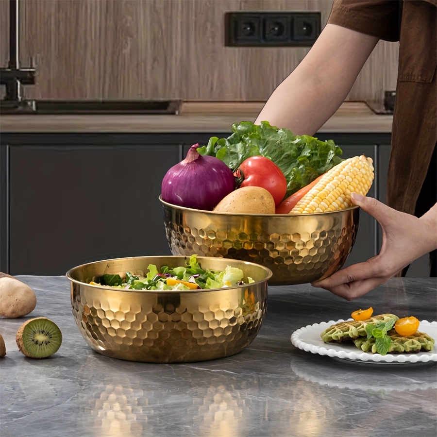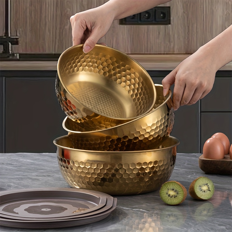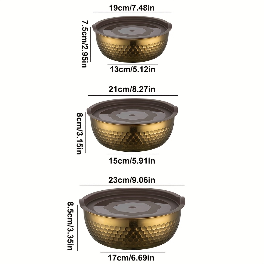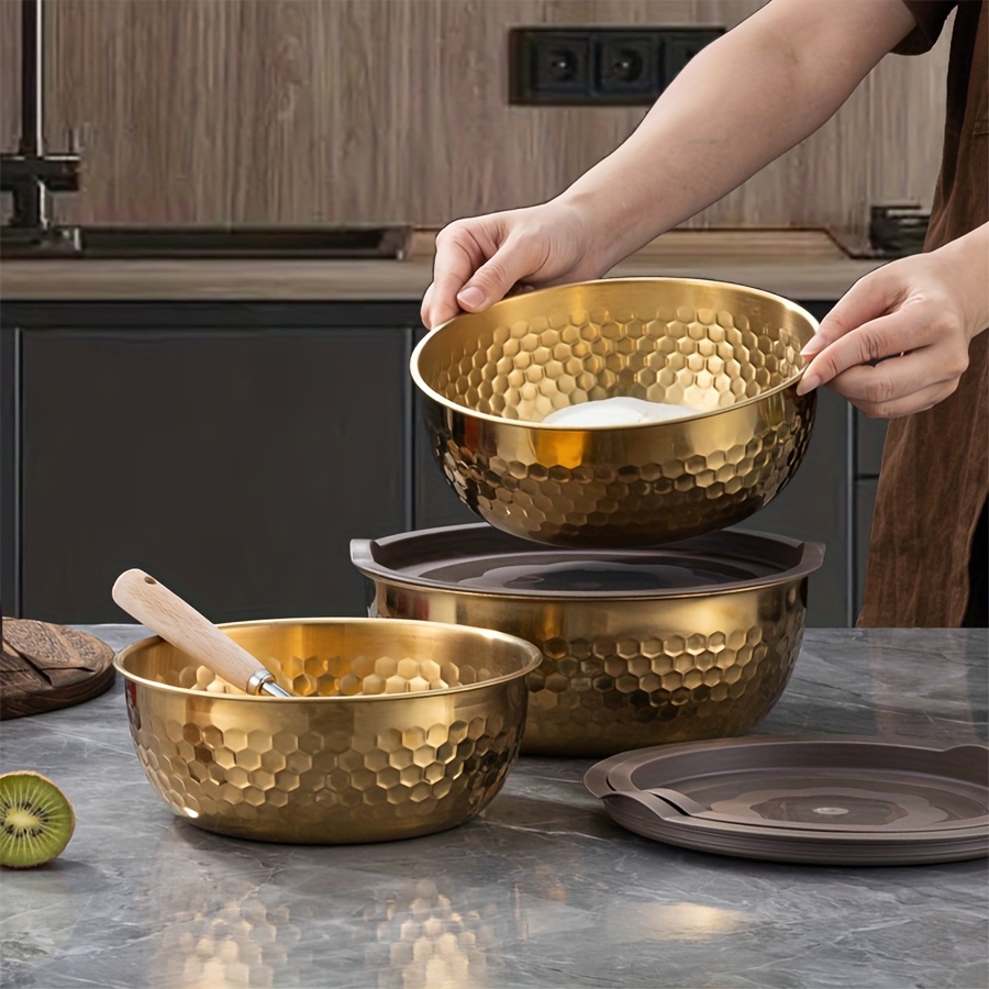2 reviews for 3pcs/set, Golden Kitchen Stainless Steel Salad Bowl with Lid