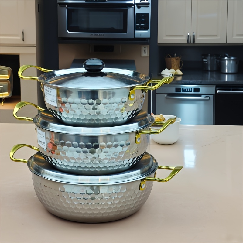 2 reviews for 3pcs Stainless Steel Cookware Set Multifunctional Double-Handled Soup Pot
