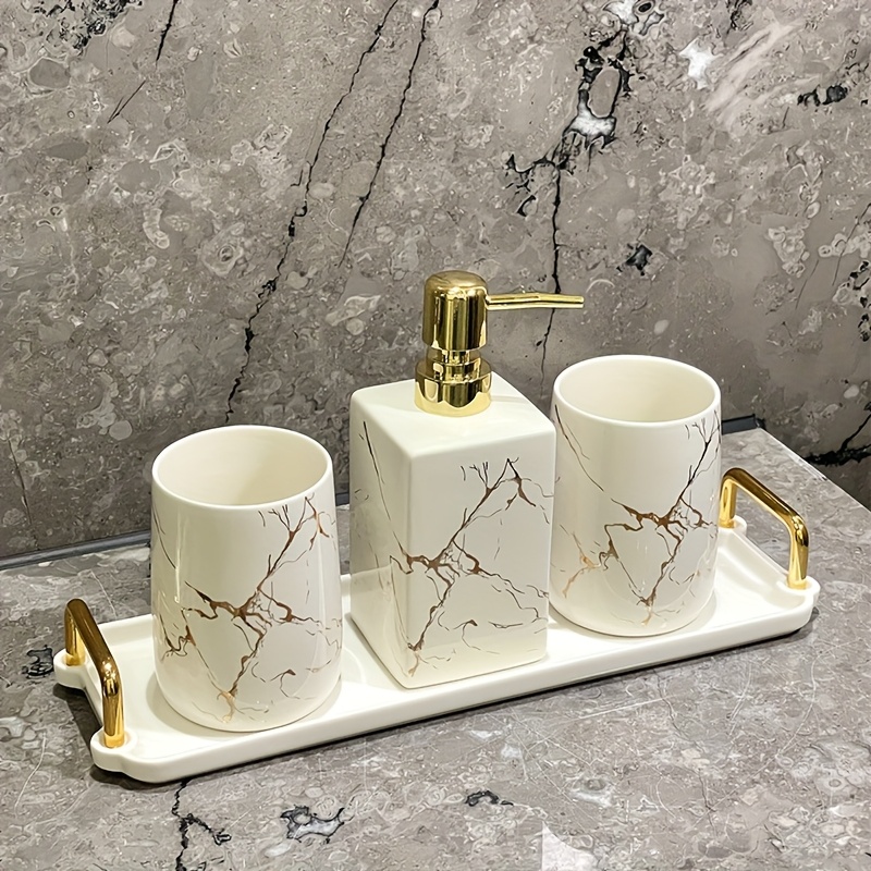 Be the first to review “4pcs Golden Vein Marble Bathroom Set:” Cancel reply