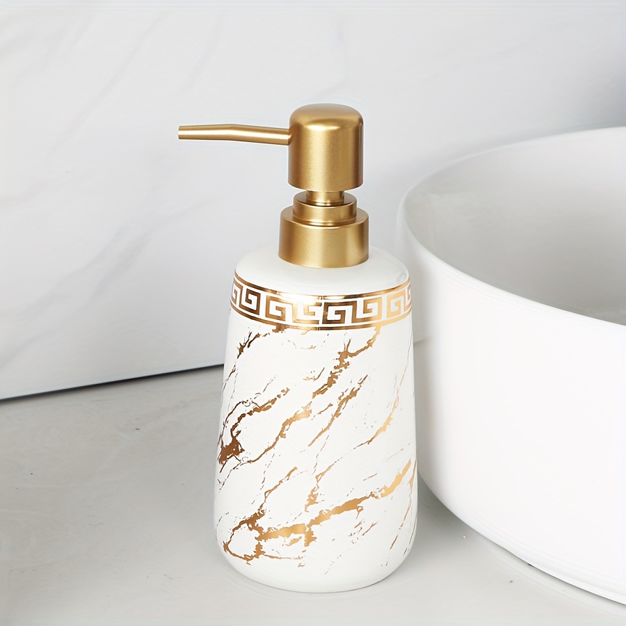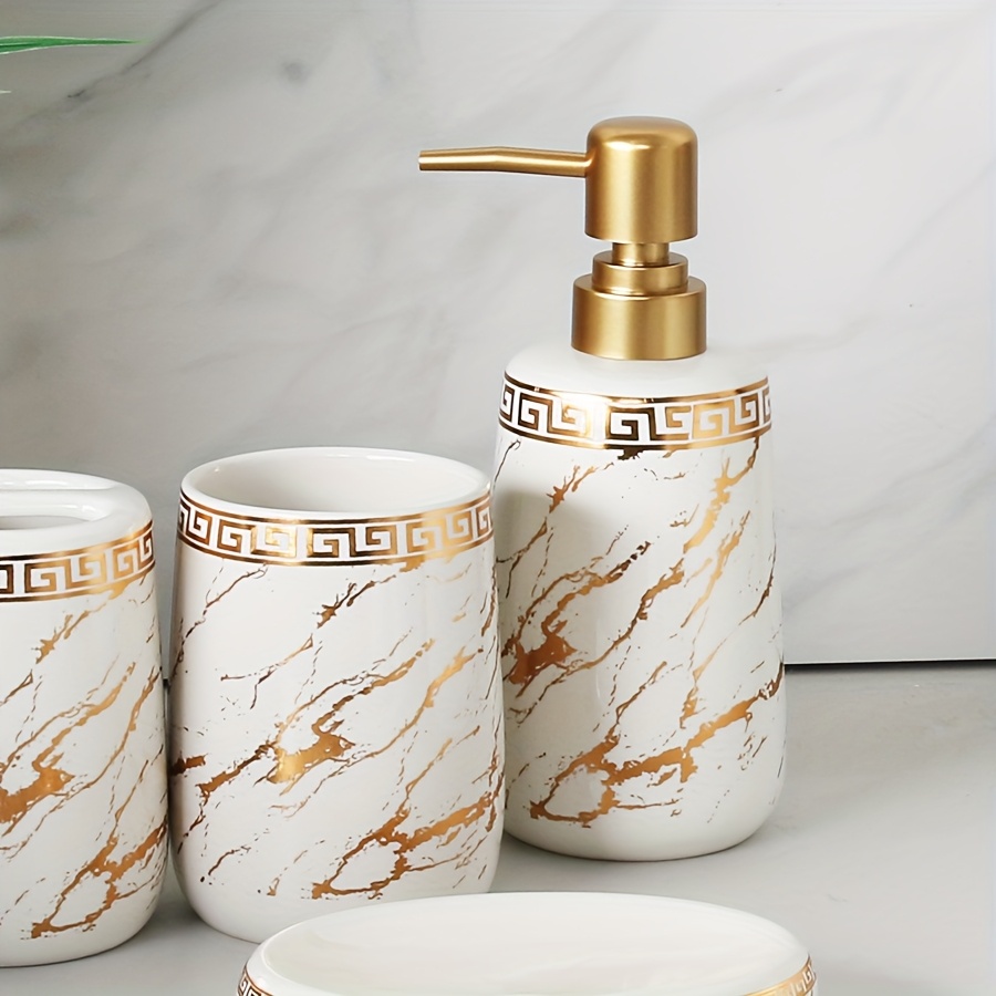 1 review for 4pcs Luxury Golden Bathroom Set with Elegant Soap Dispenser Set