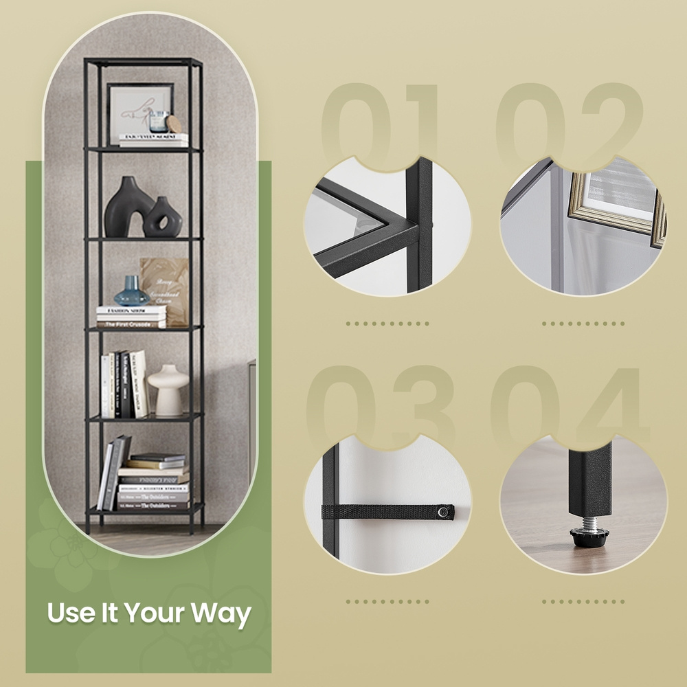 4 reviews for 6-Tier Glass Shelf, Bookshelf, Storage Rack