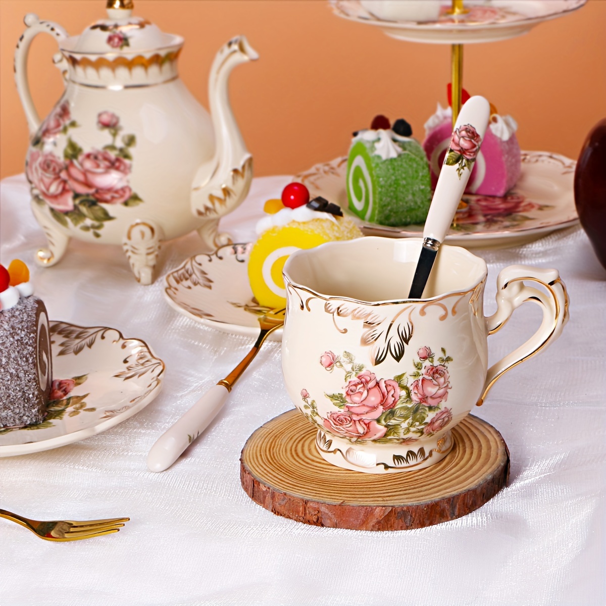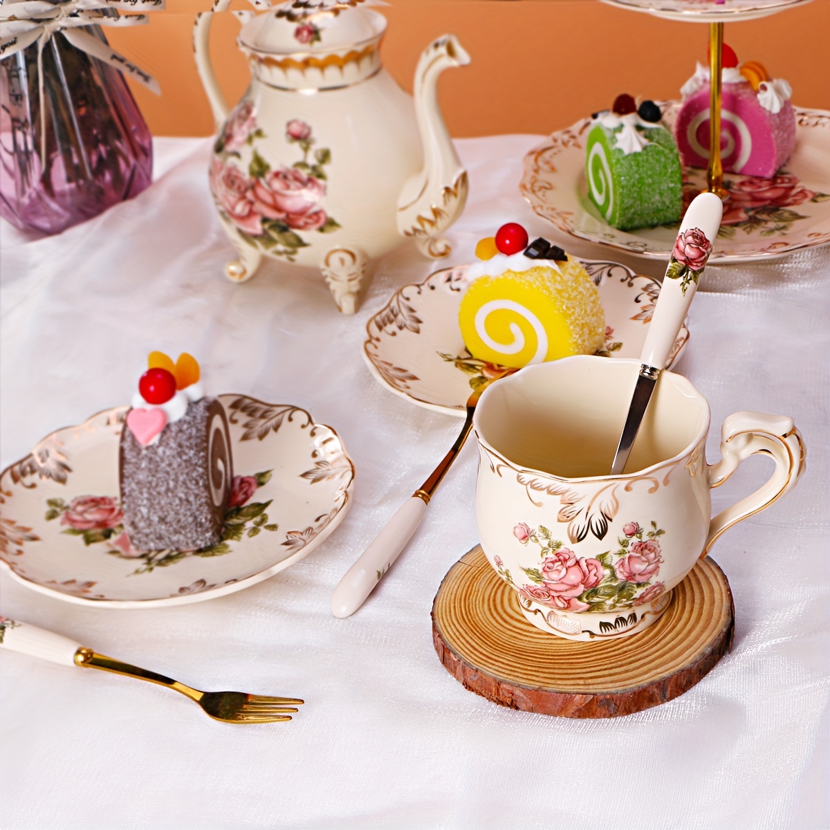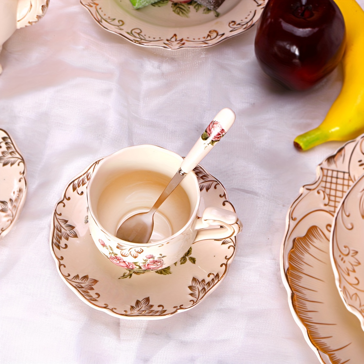 1 review for 7pcs/19pcs, Lavish European Style Tea Set, Teacups, Saucers, Spoons And 1 Rack