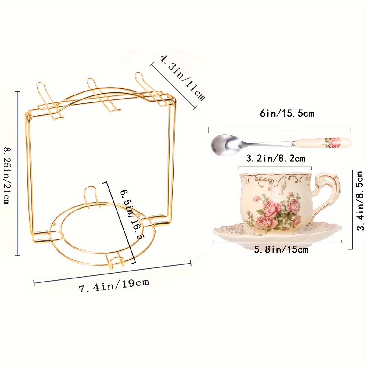 | Color | Model D – 7pcs, 6 Cups Saucer Spoon 1 Metal Rack |
