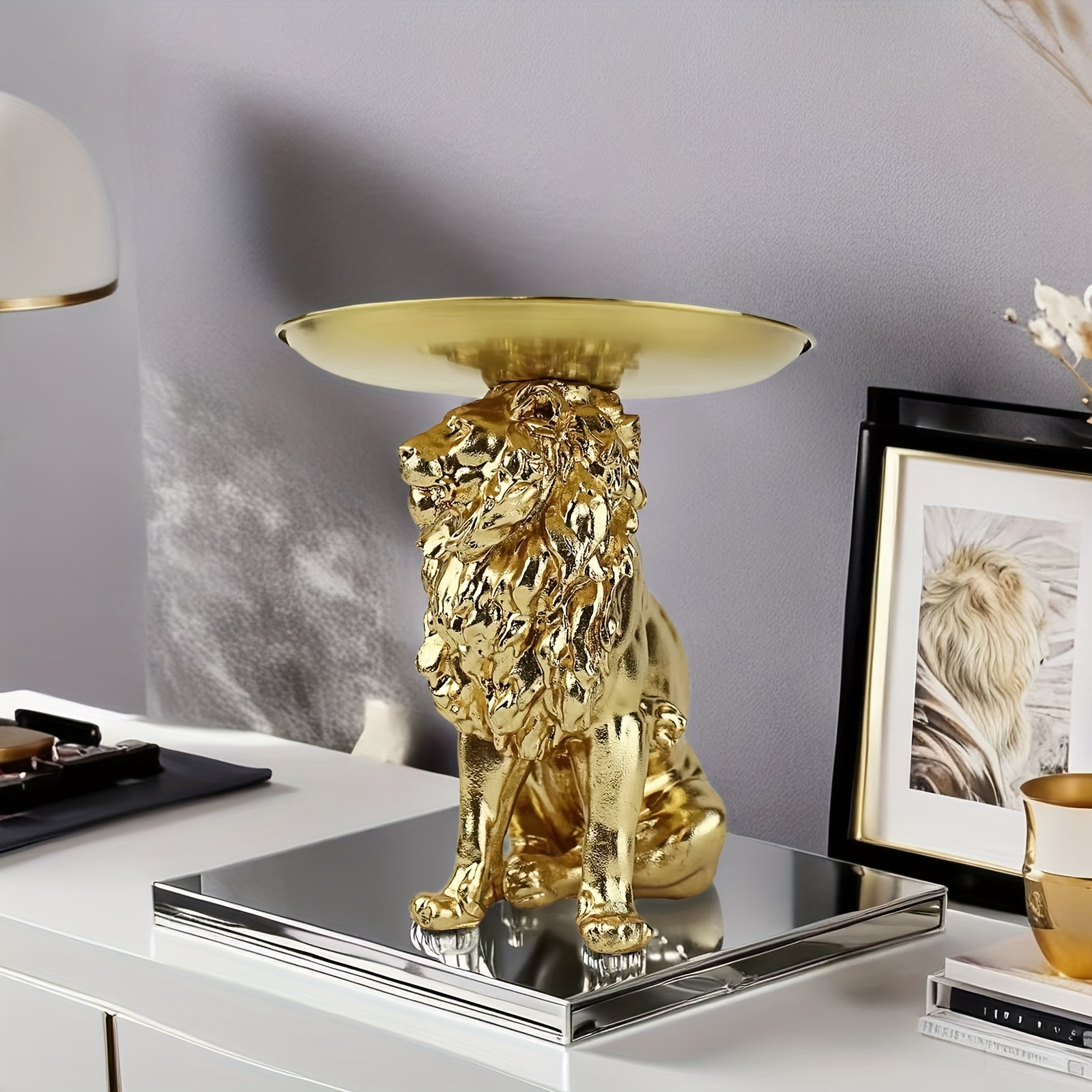 The design of the seated lion provides a captivating and striking appearance, transforming it into both a functional storage piece and an attractive decoration for your workspace. The golden tray adds to its charm, producing a cozy and welcoming atmosphere.