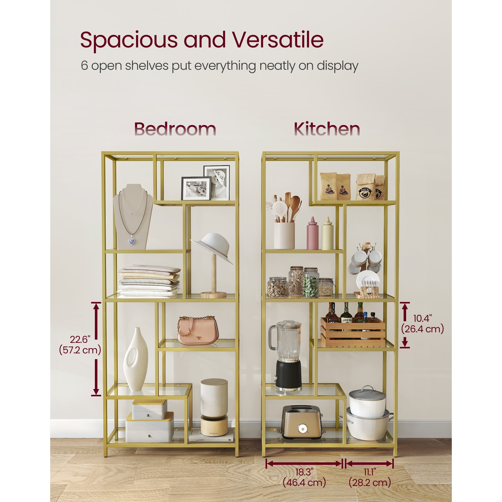 2 reviews for Deluxe Metallic Gold 6-Tier Tall Bookcase, Display Shelf, Plant Stand