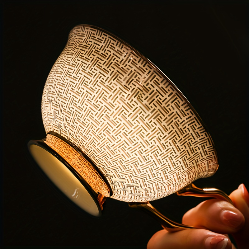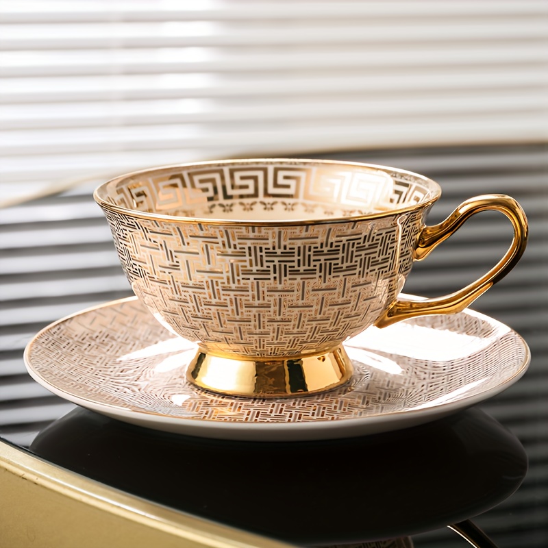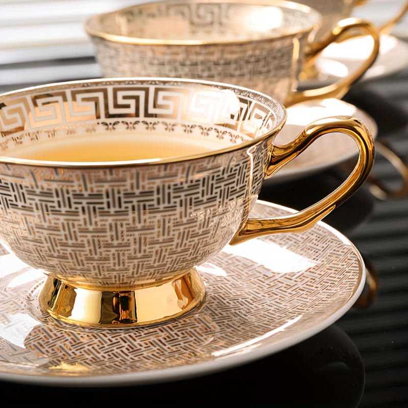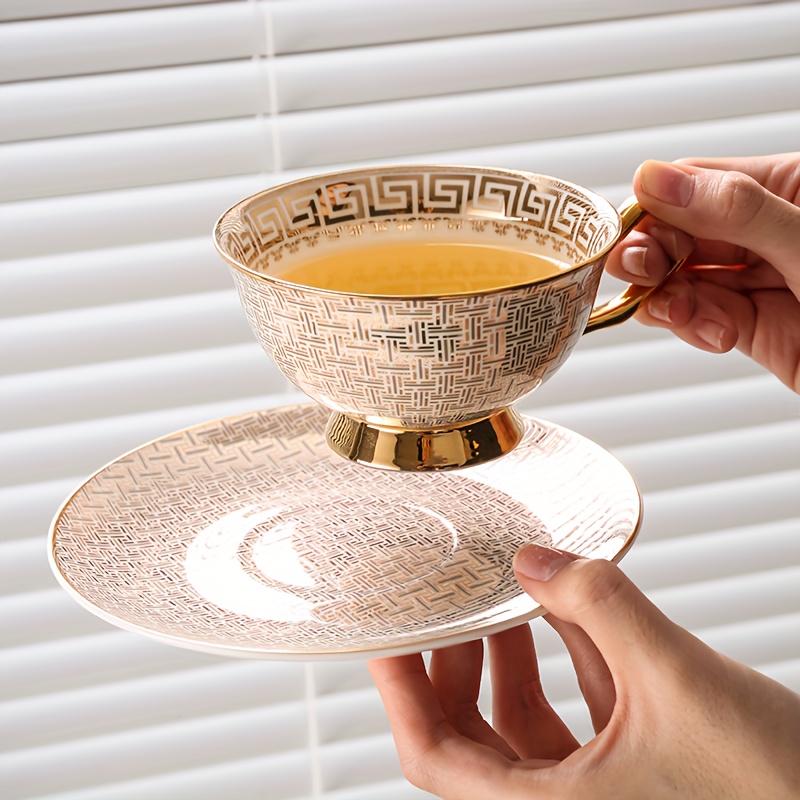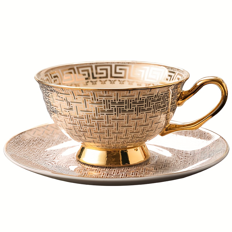 | Items | white grid (golden foil) 1 cup 1 saucer 1 round head golden spoon-ordinary packaging |