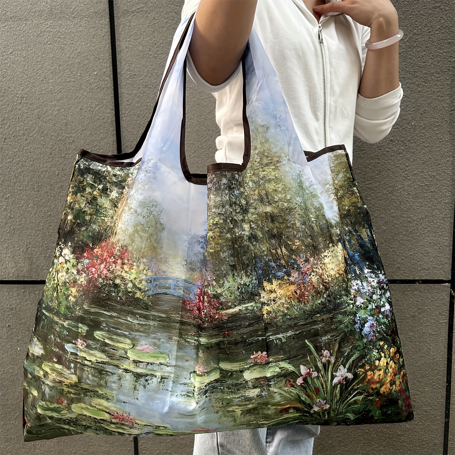 4 reviews for Floral Oil Painting Design Large Capacity Lightweight Foldable Nylon Tote Bag