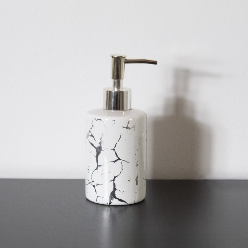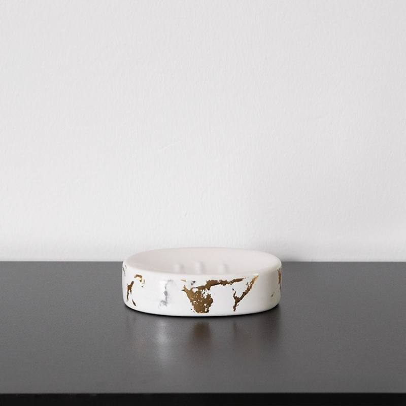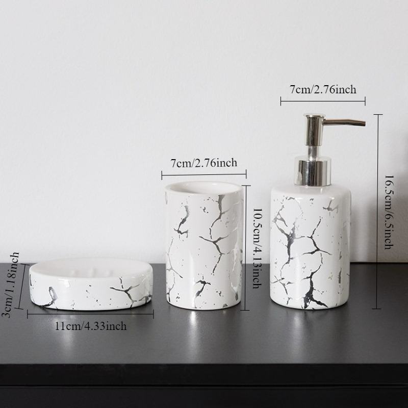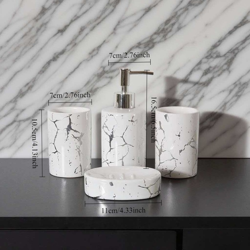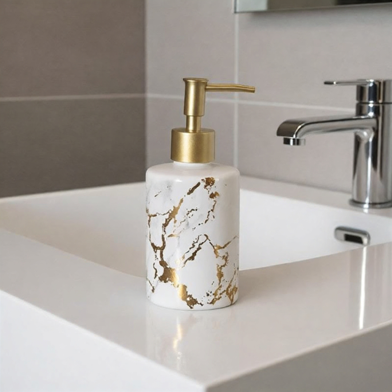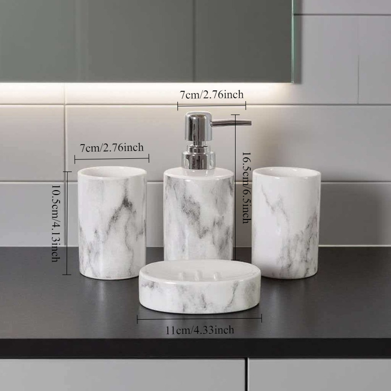 1 review for Four-Piece White Golden Textured End Marble Bathroom Set