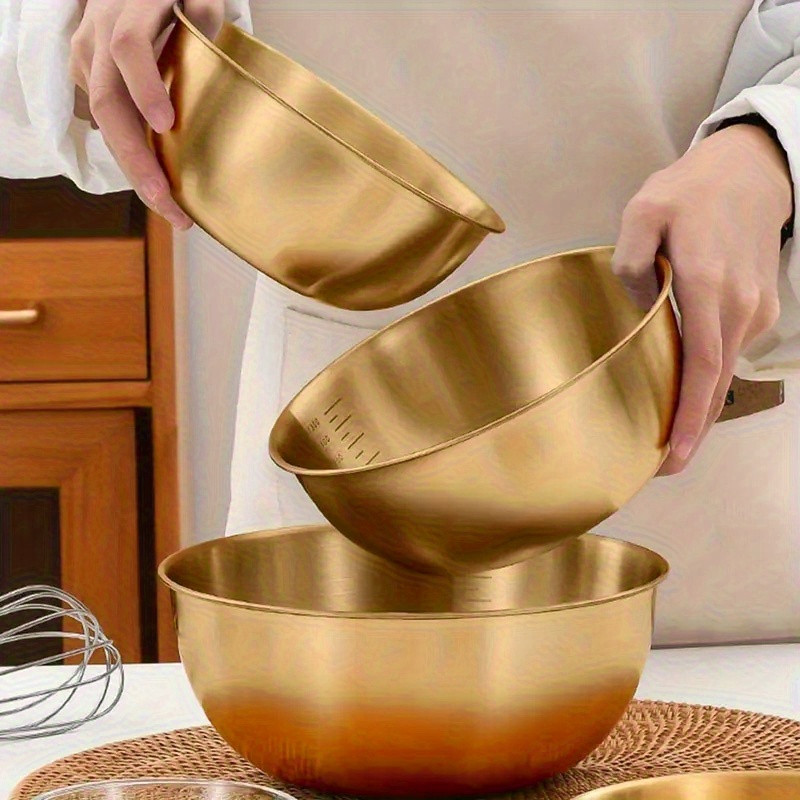 4 reviews for Golden Set of Three Large Steel Mixing Bowls