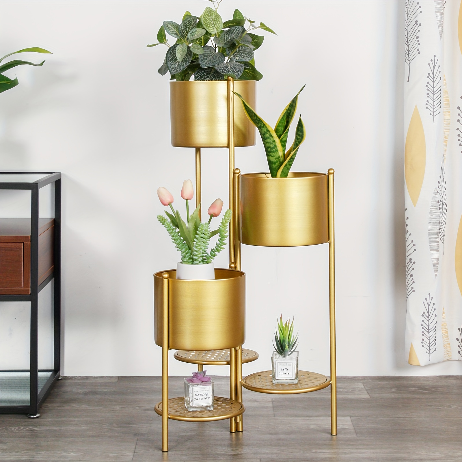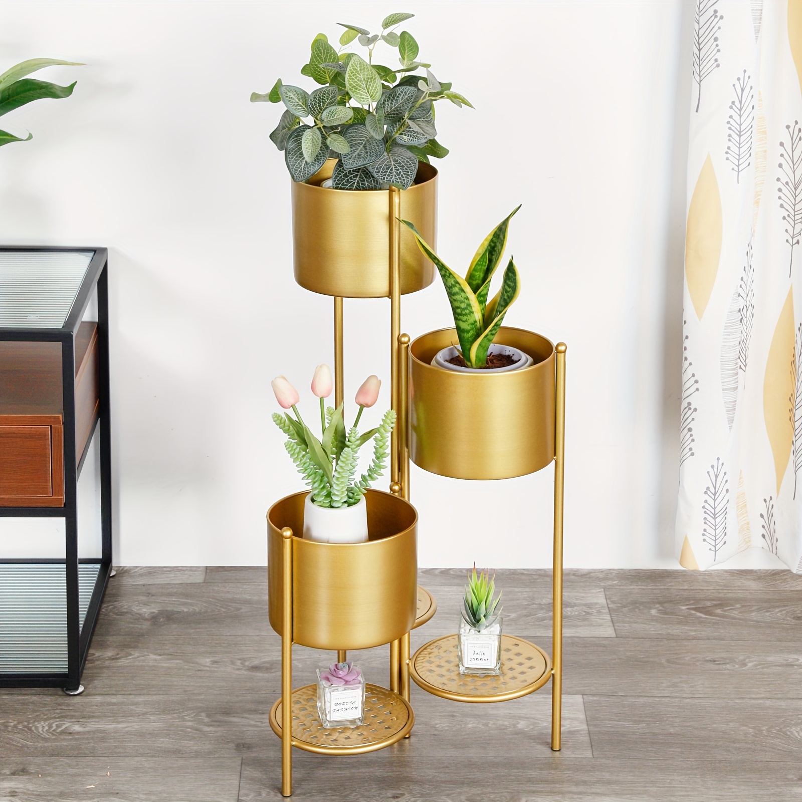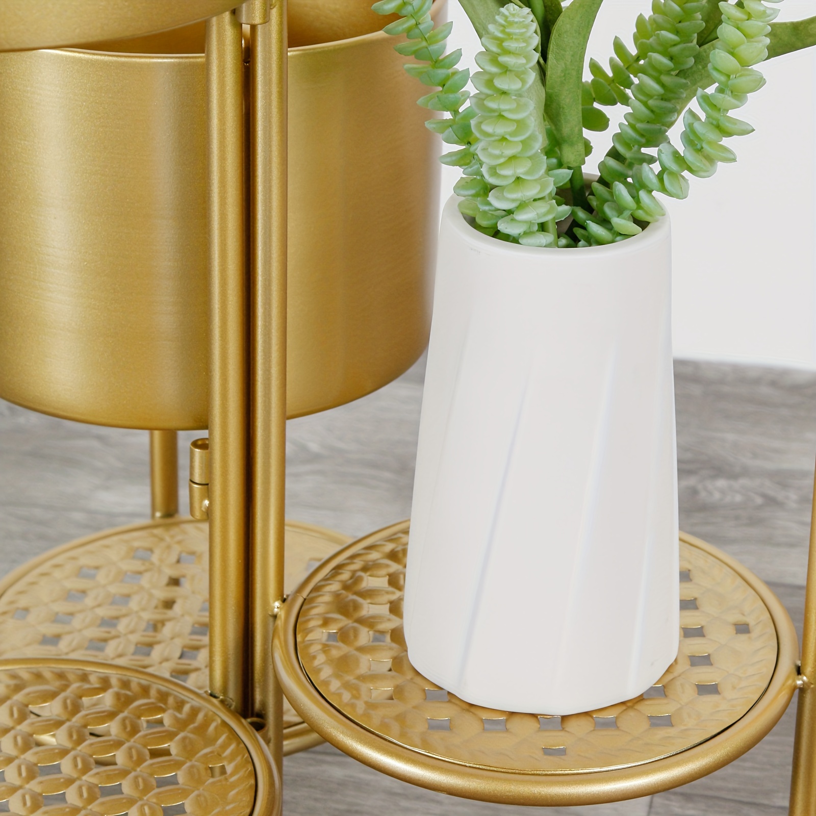 1 review for Golden Wrought Iron Plant Stand for Indoor Use