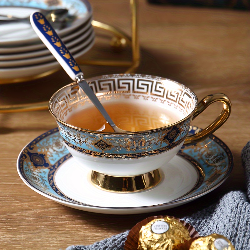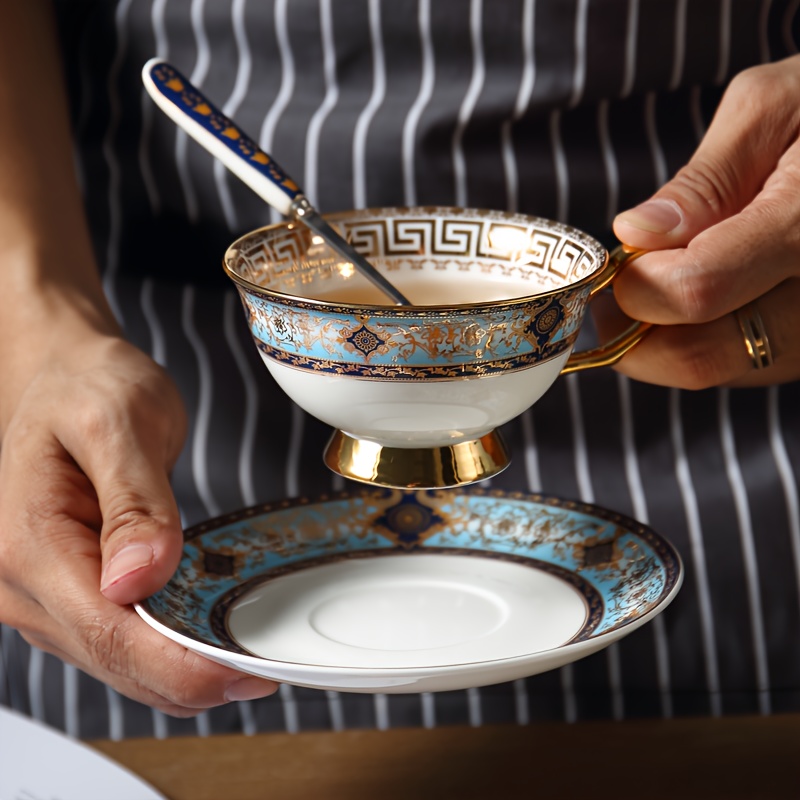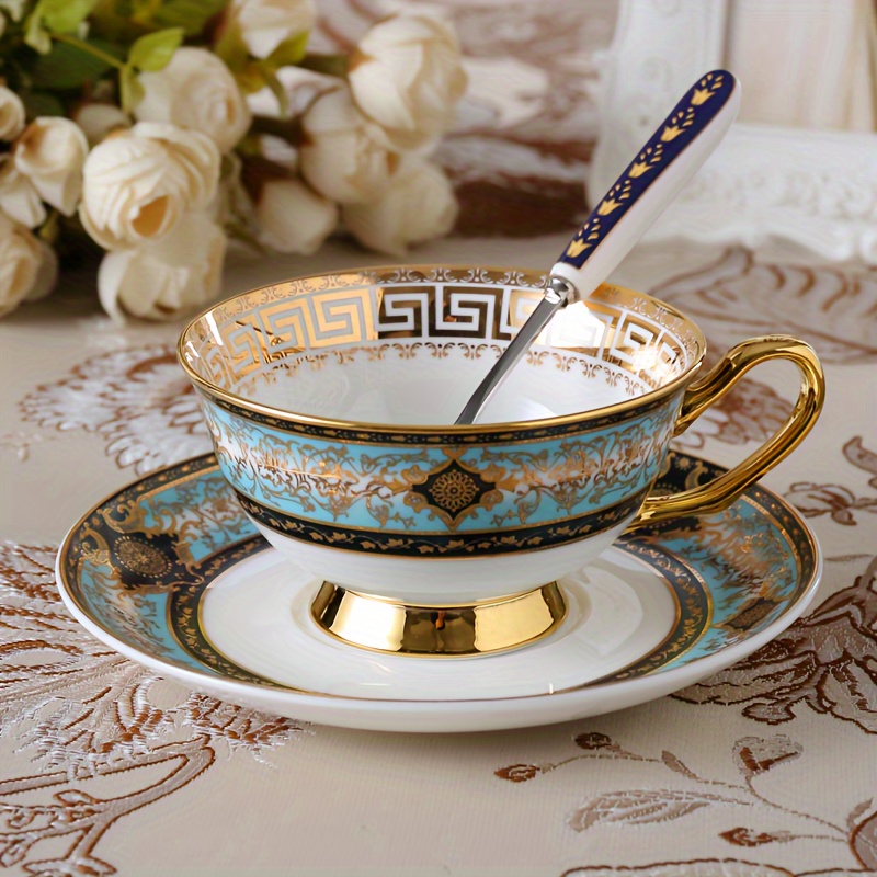 1 review for Lavish 2pcs bone china coffee cup plate spoon set, European style coffee cup