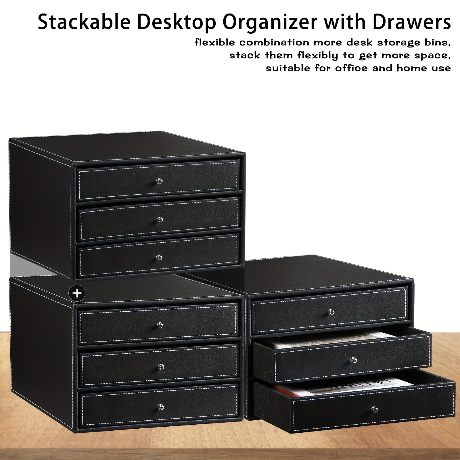 1 review for Leather Stackable Desktop Storage Drawer/Office Drawer Storage Cabinet for Files