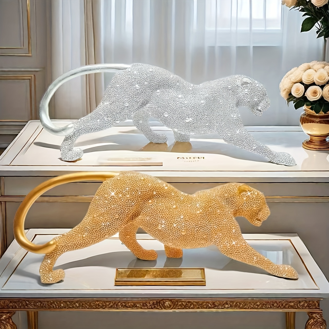 2 reviews for Luxurious Golden Bead Leopard Resin Bead Art Sculpture