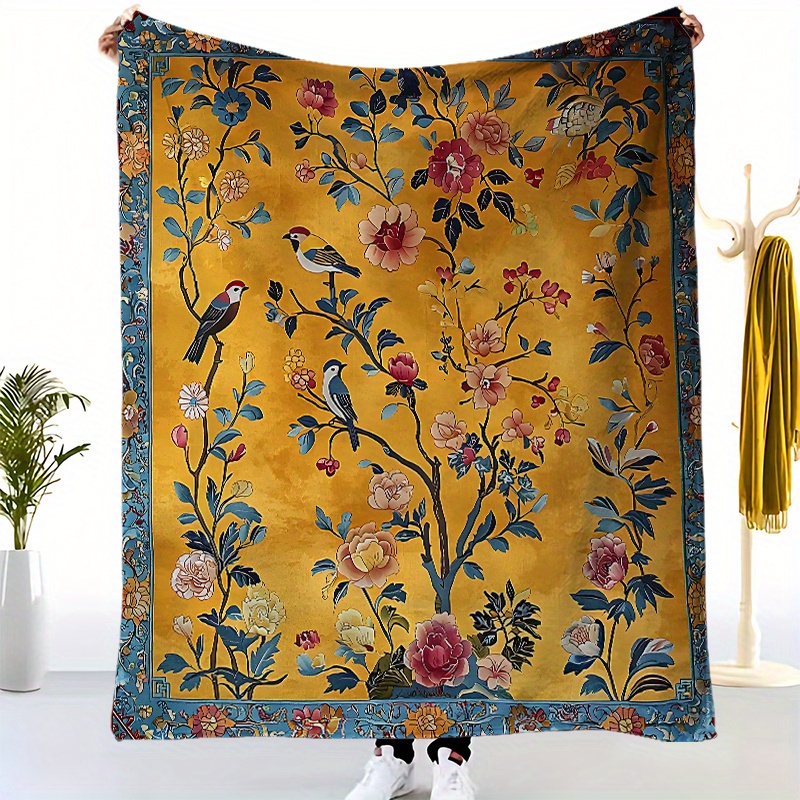 Be the first to review “Luxury Golden-Yellow Floral & Bird Print Flannel Blanket” Cancel reply