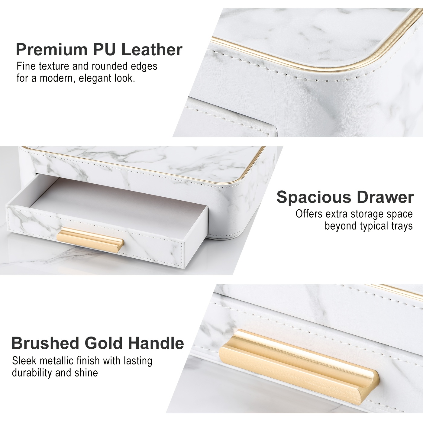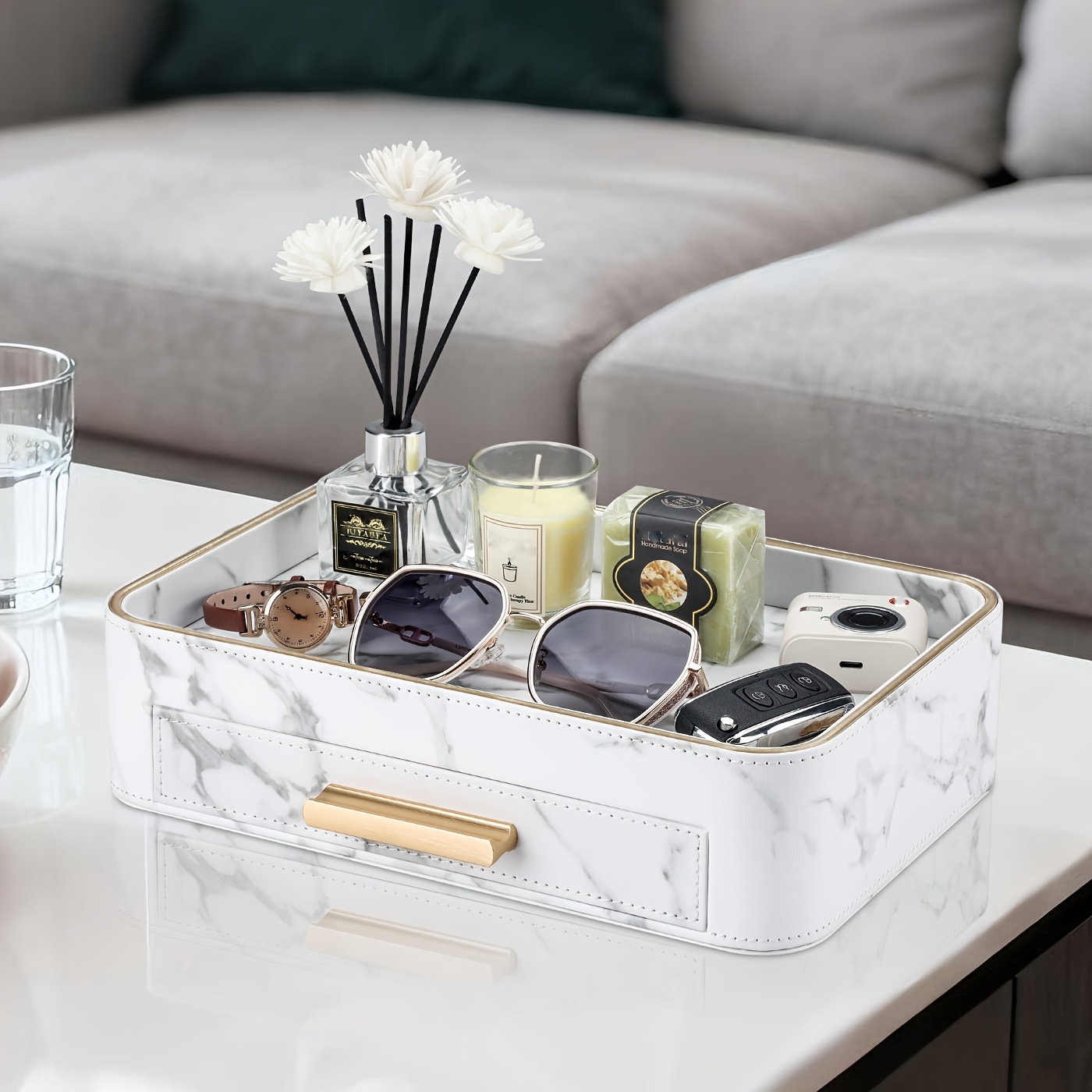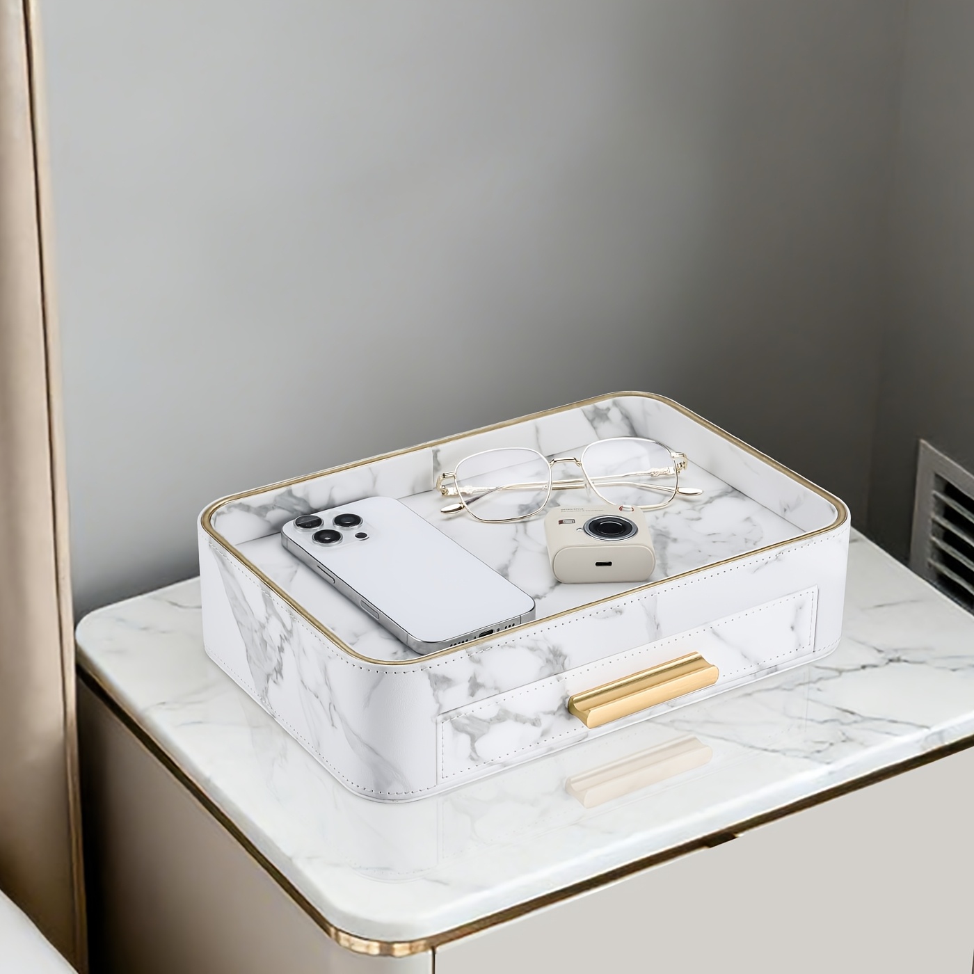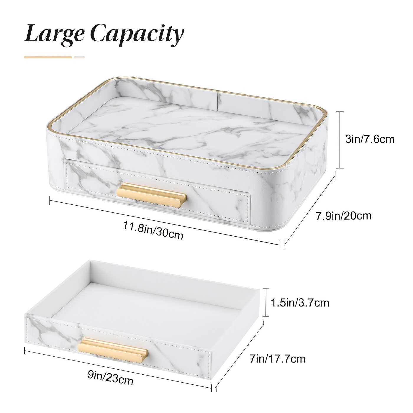 Be the first to review “Luxury White Marble PU Leather Storage Tray with Elegant Drawer” Cancel reply