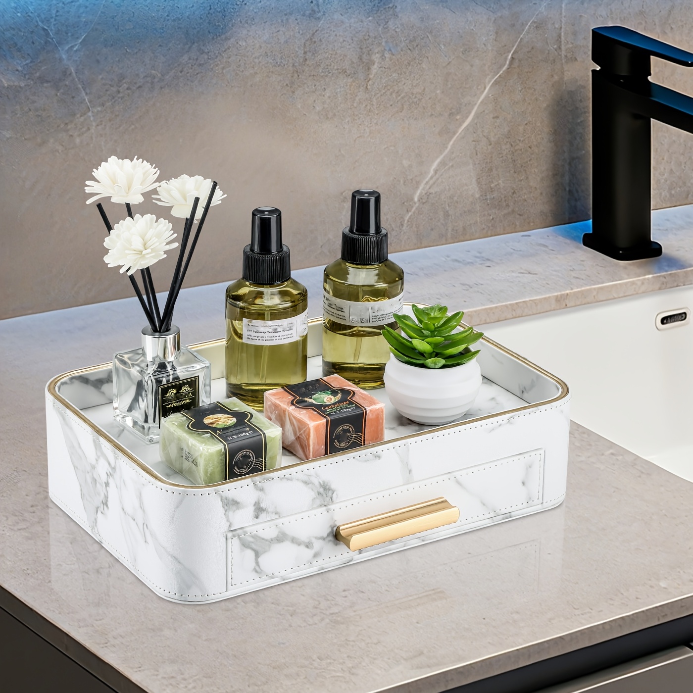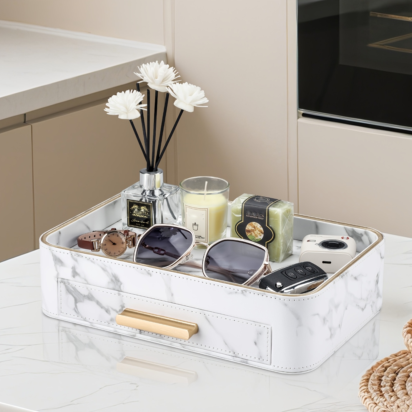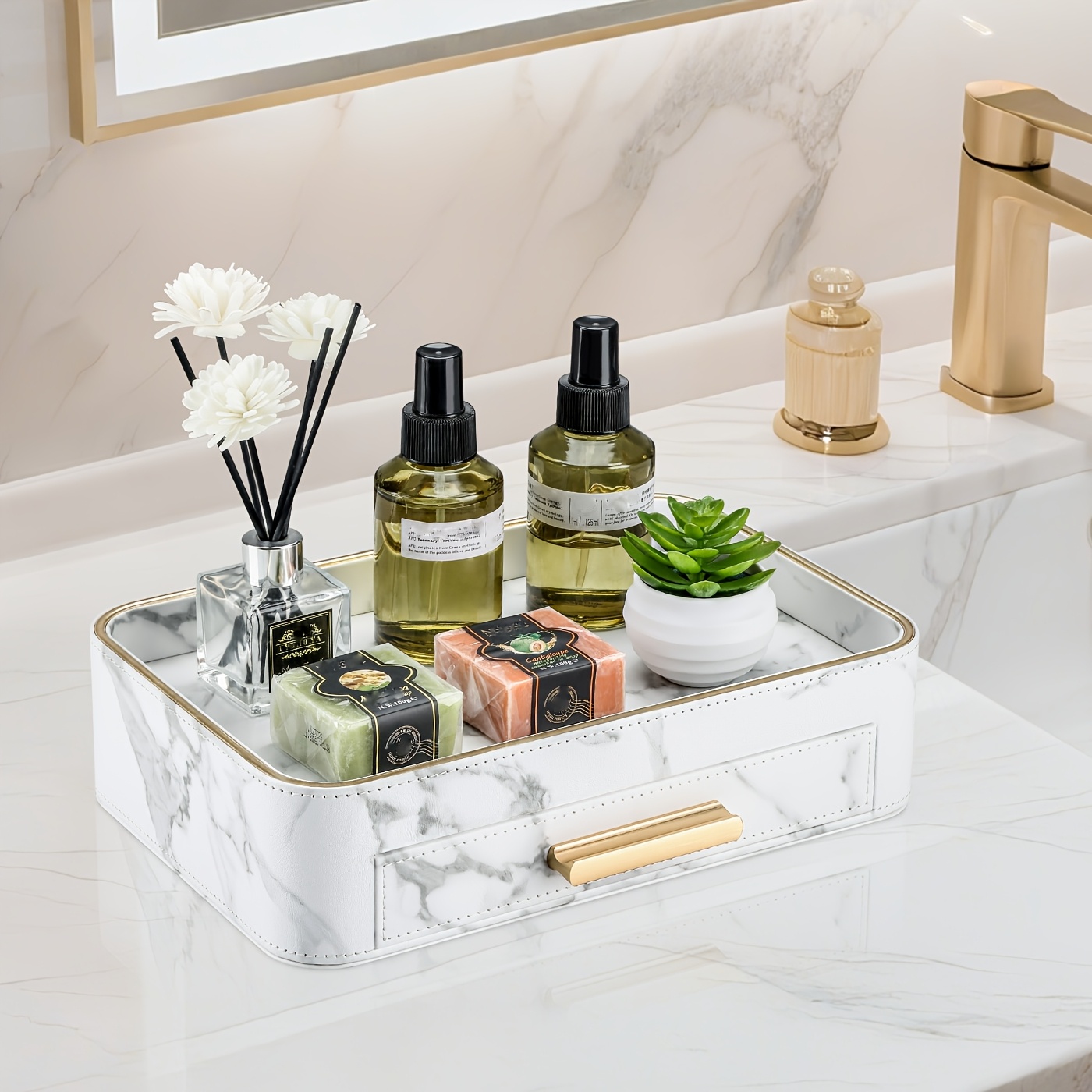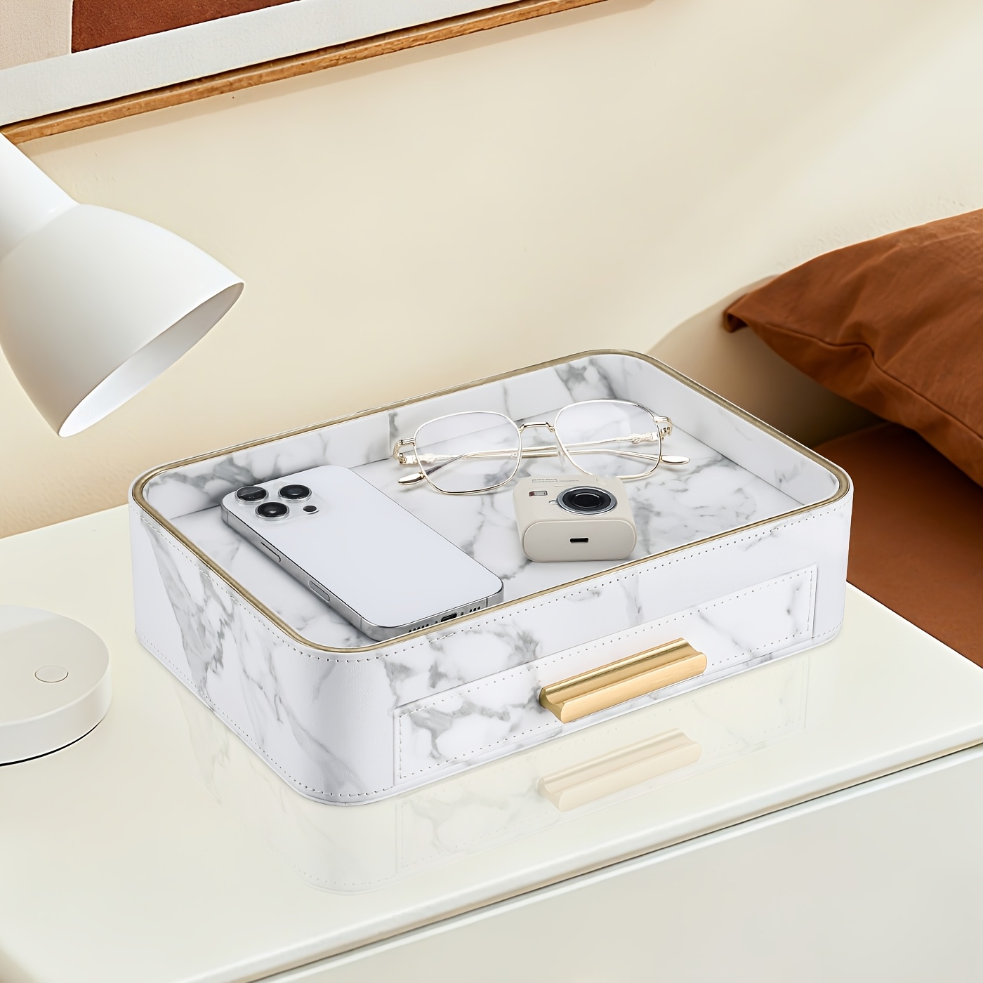 Be the first to review “Luxury White Marble PU Leather Storage Tray with Elegant Drawer” Cancel reply