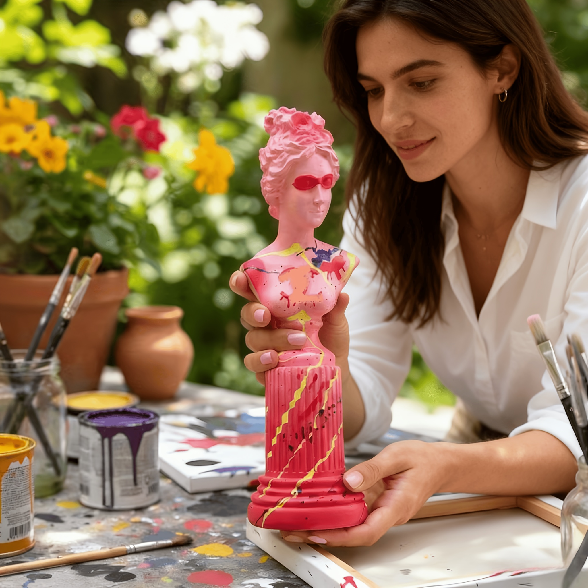 Artistic Graffiti Venus Sculpture – Eye-Catching Pink Figurine for Studio, Apartment & Gallery Display