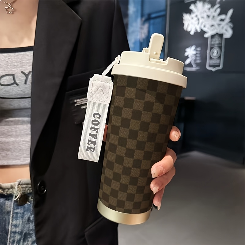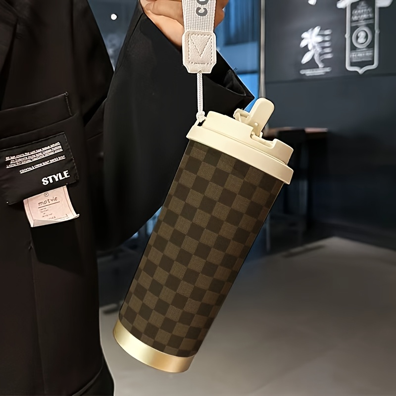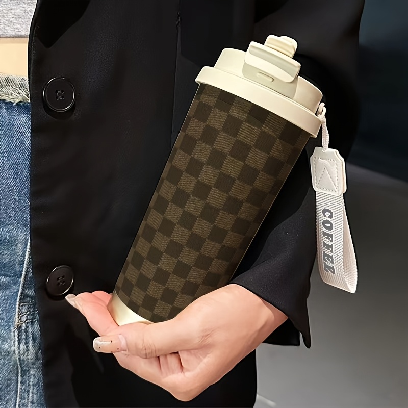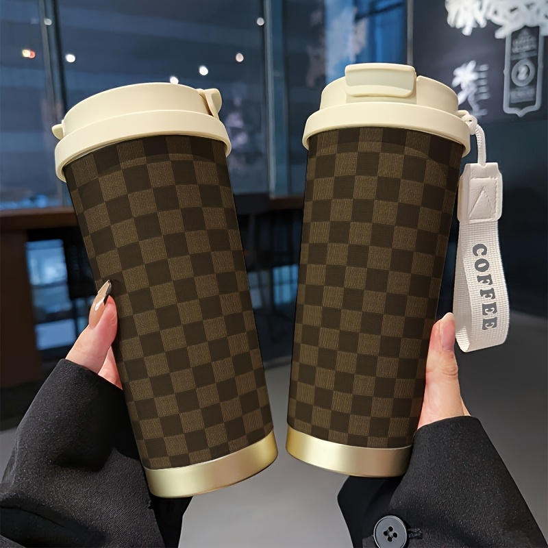4 reviews for Stainless Steel Insulated Travel Mug. Brown Plaid Themed Print. Comes with Hand Strap