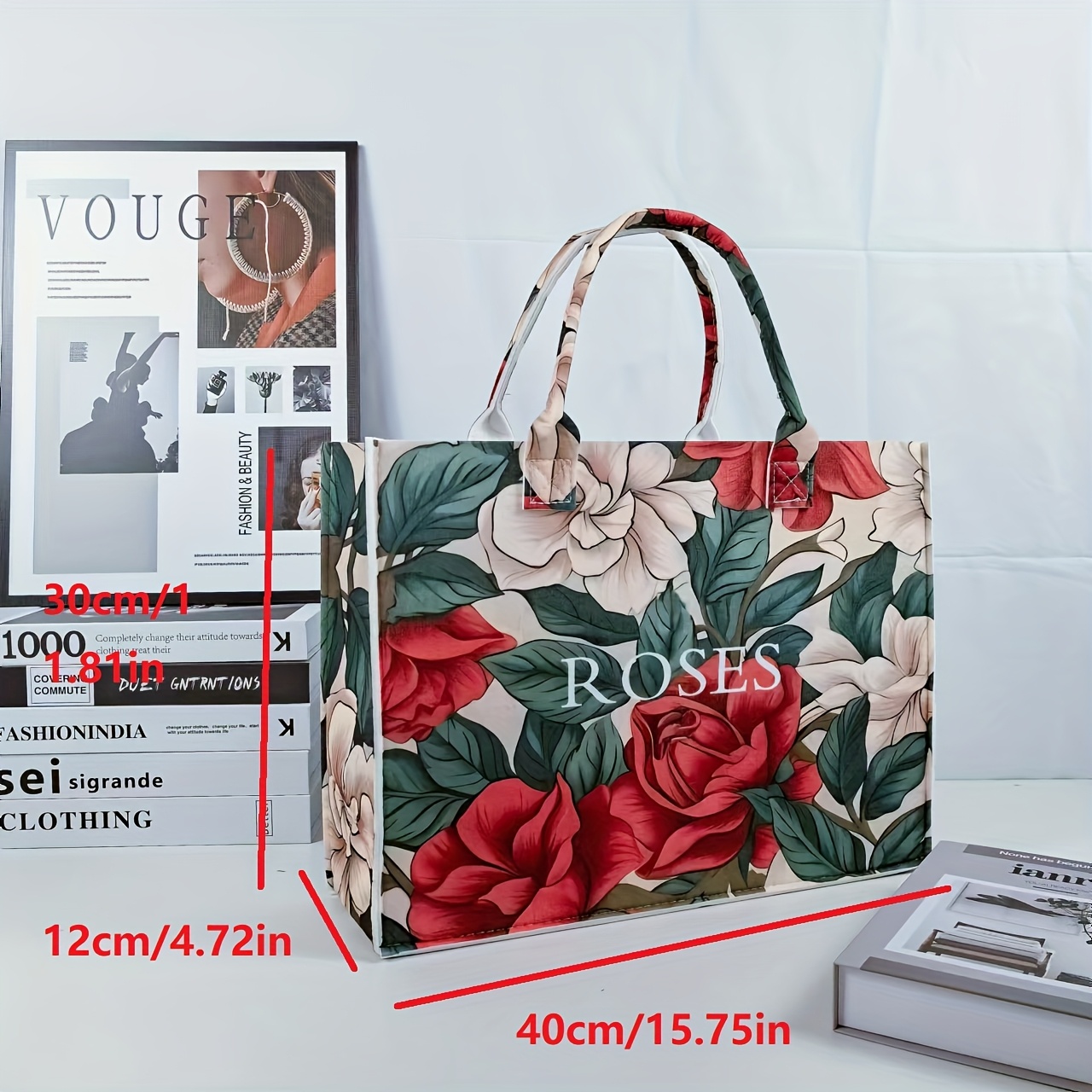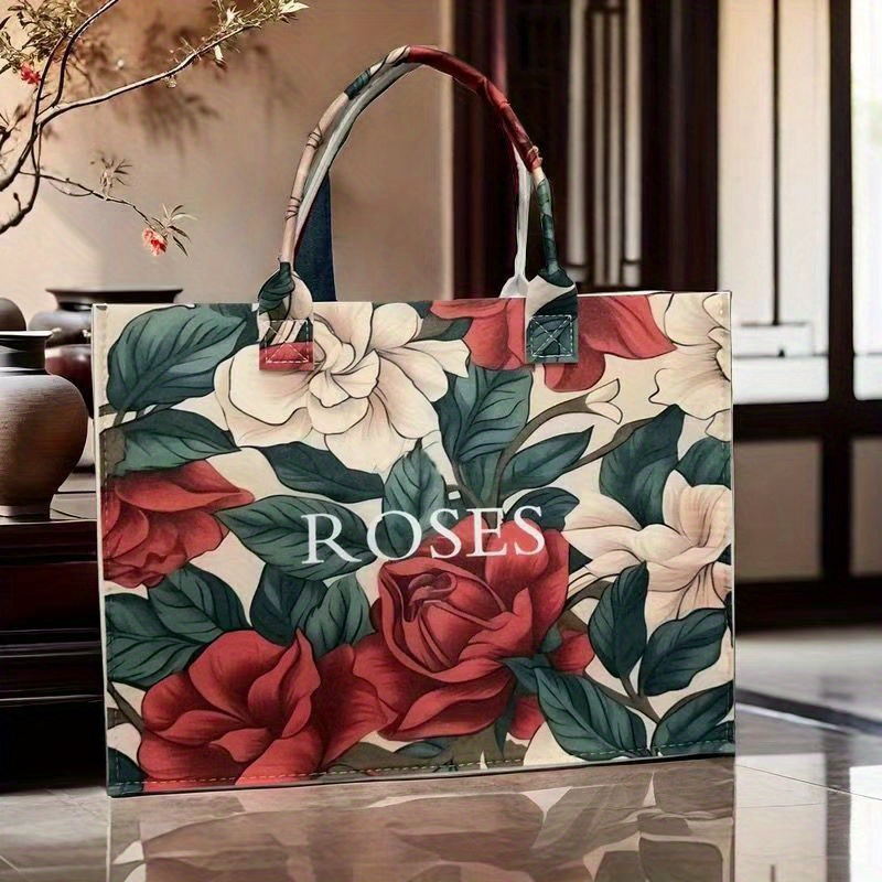 4 reviews for Women’s Large Floral Tote Bag Pink Roses & Green Leaves Design